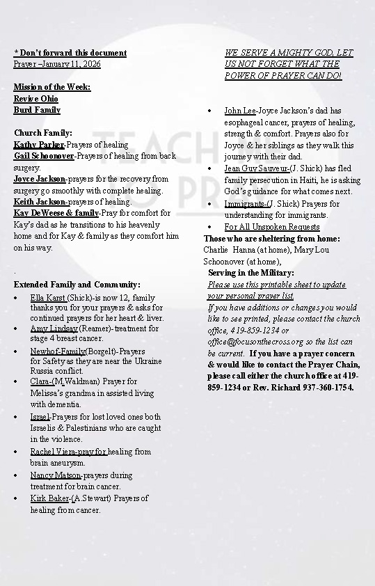 You can receive this weekly e-newsletter in your inbox. To be added to the email list, just contact our Office Administrator at office@focusonthecross.org